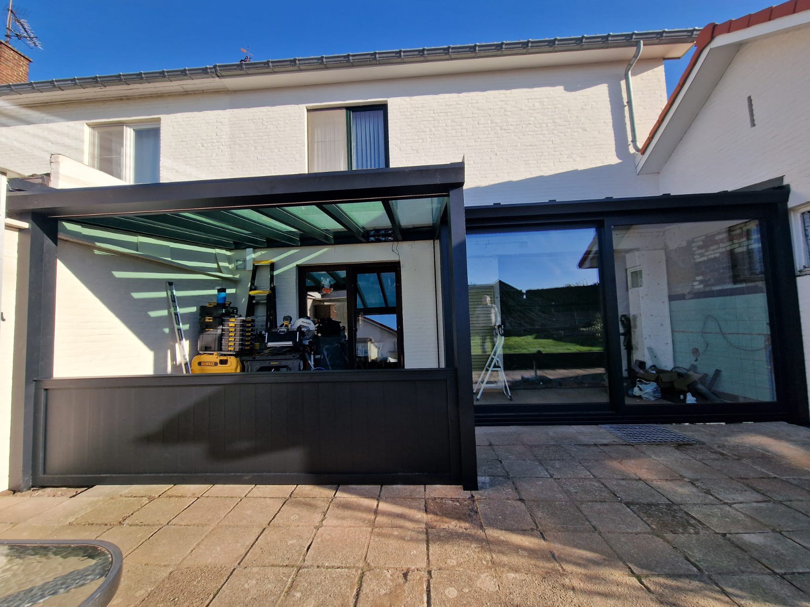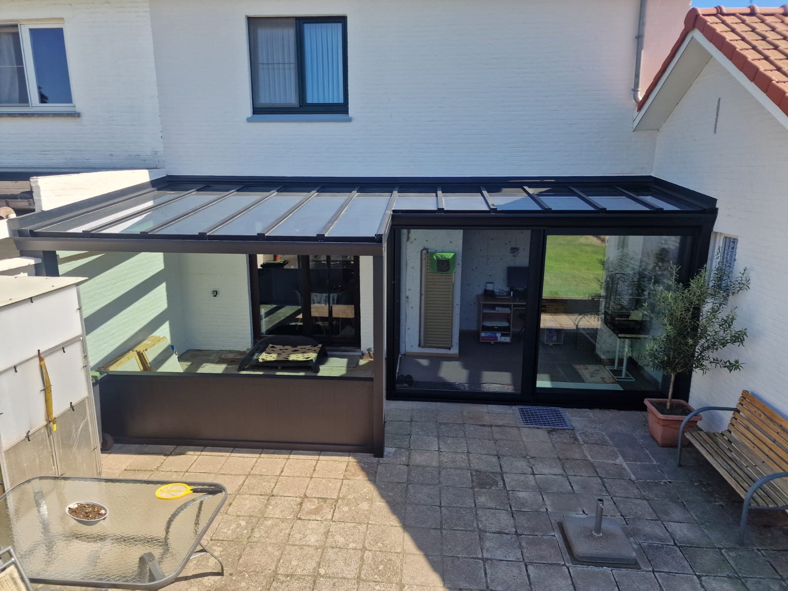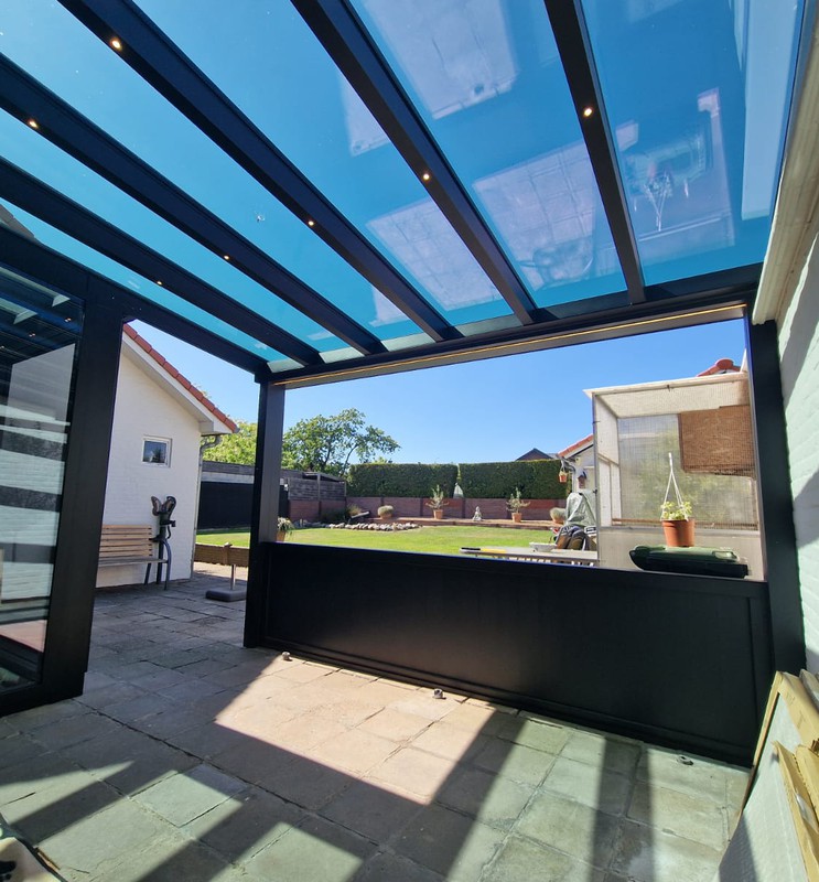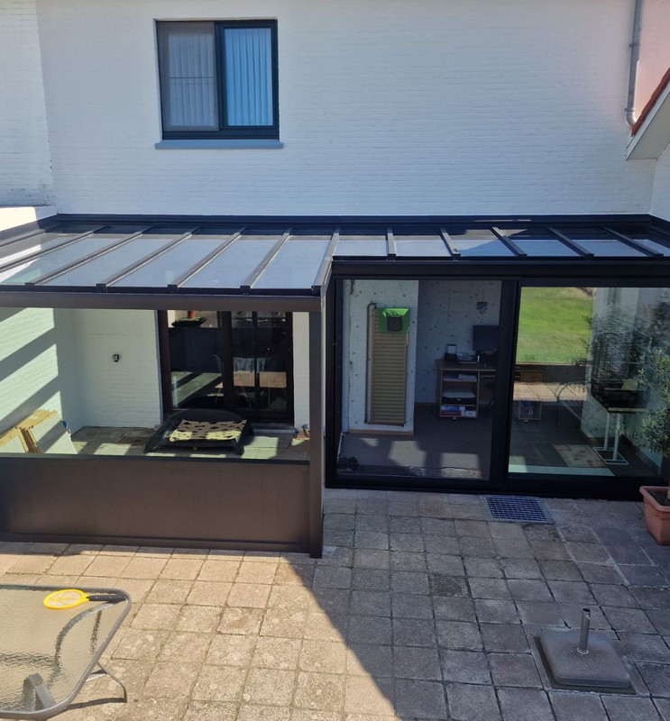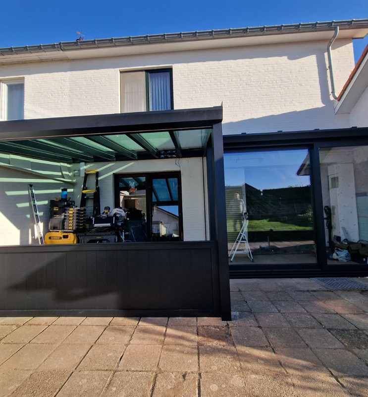 Voor deze klant plaatsten we een mooie en functionele screen aan een bestaande overkapping. Het resultaat is een gezellige buitenruimte waar je op elk moment van de dag comfortabel kan zitten – zelfs bij felle zon of frisse wind.