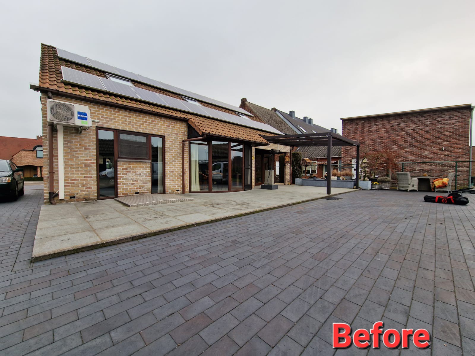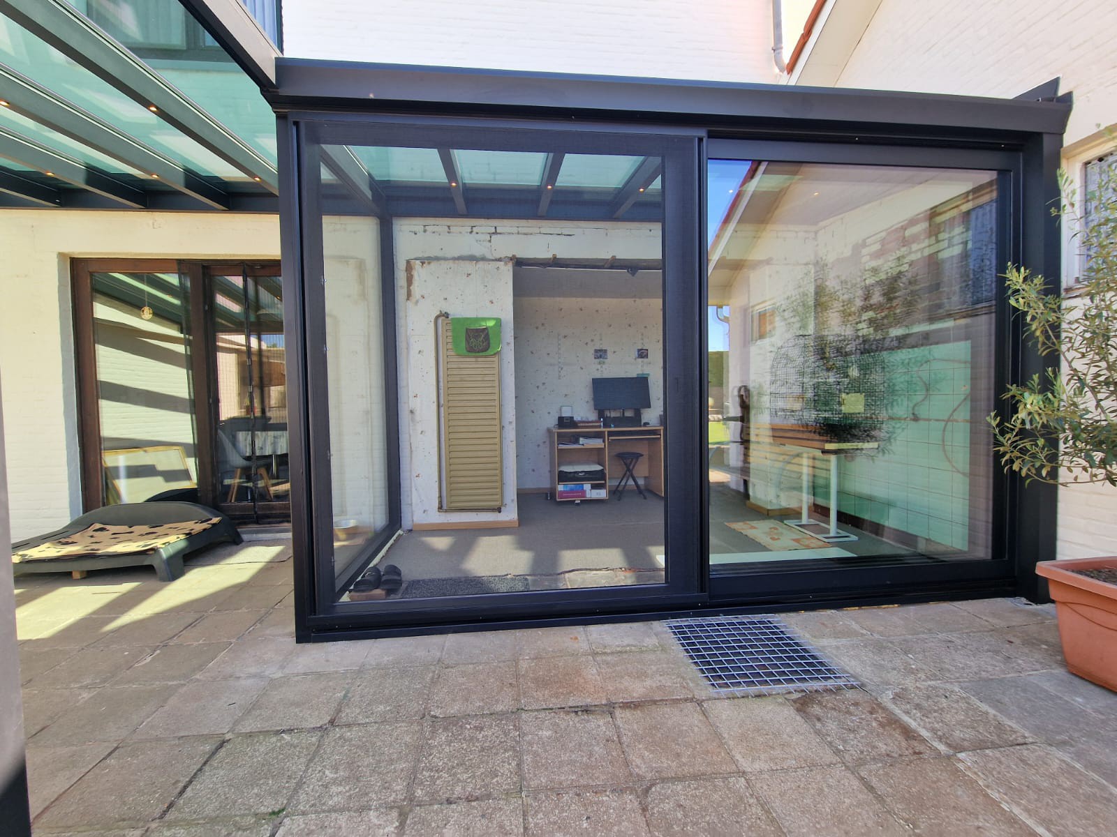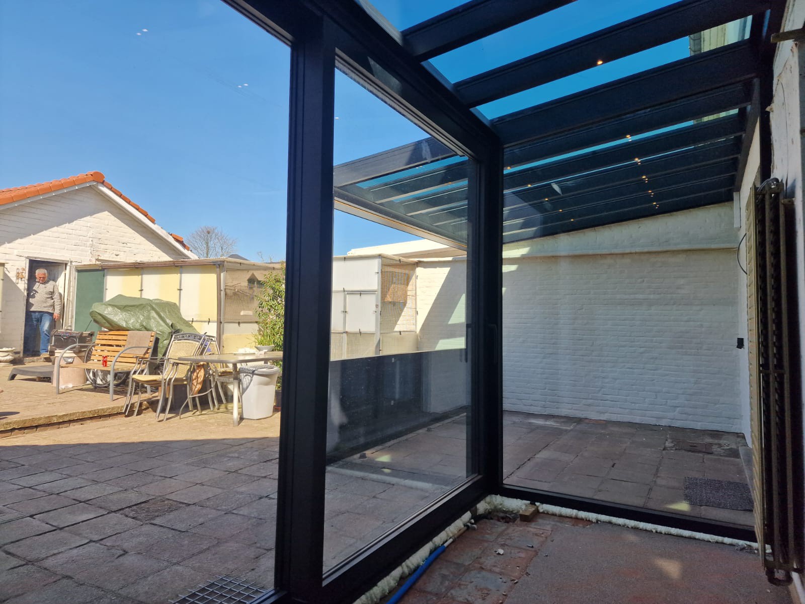 Voor deze klant plaatsten we een mooie en functionele screen aan een bestaande overkapping. Het resultaat is een gezellige buitenruimte waar je op elk moment van de dag comfortabel kan zitten – zelfs bij felle zon of frisse wind.