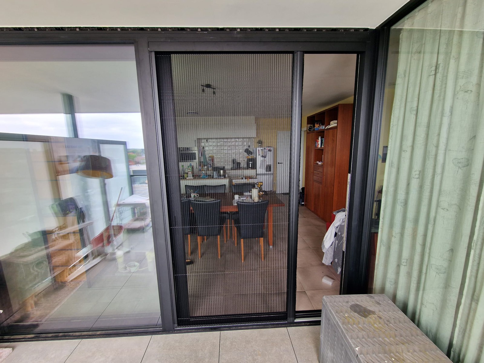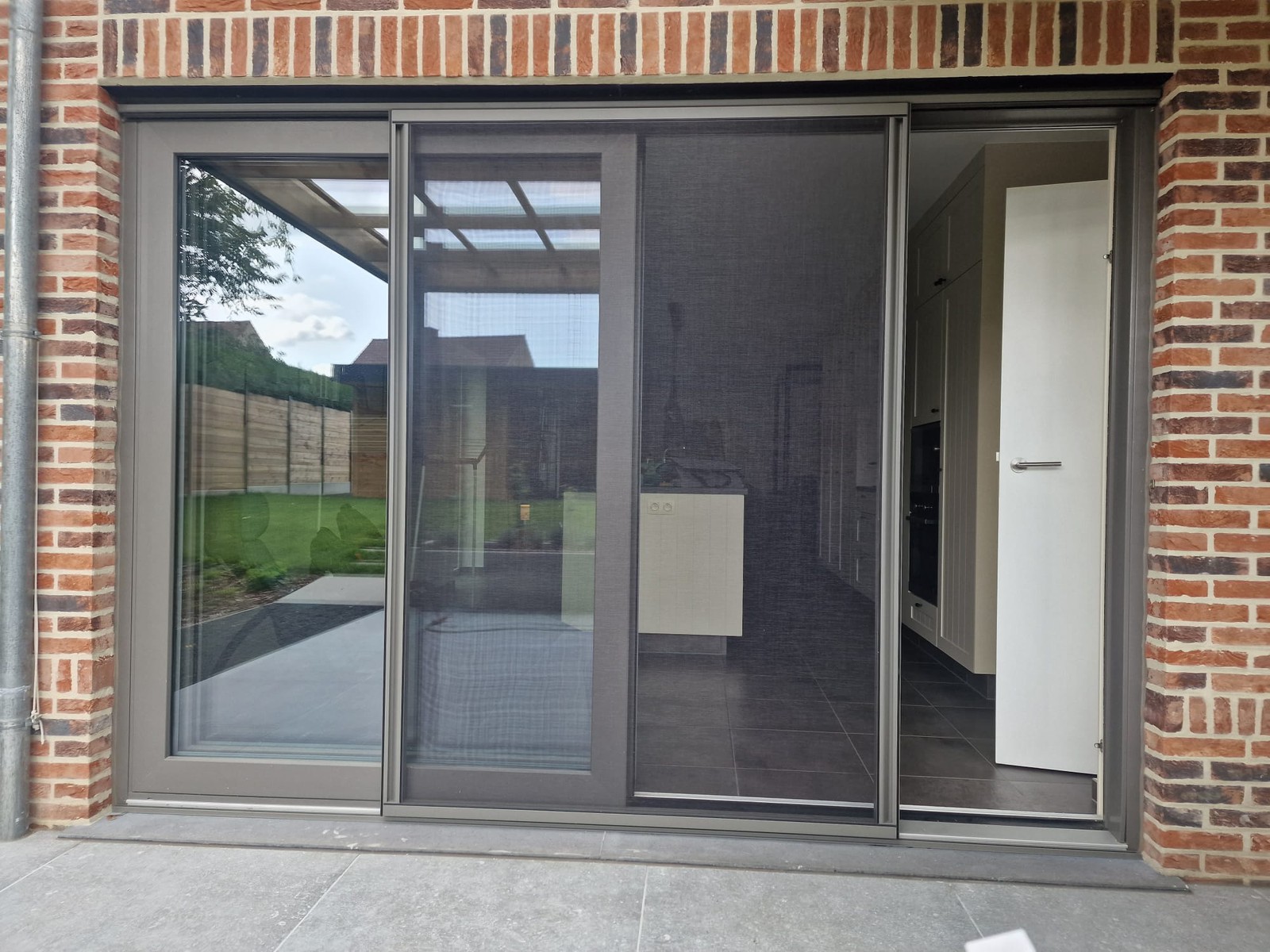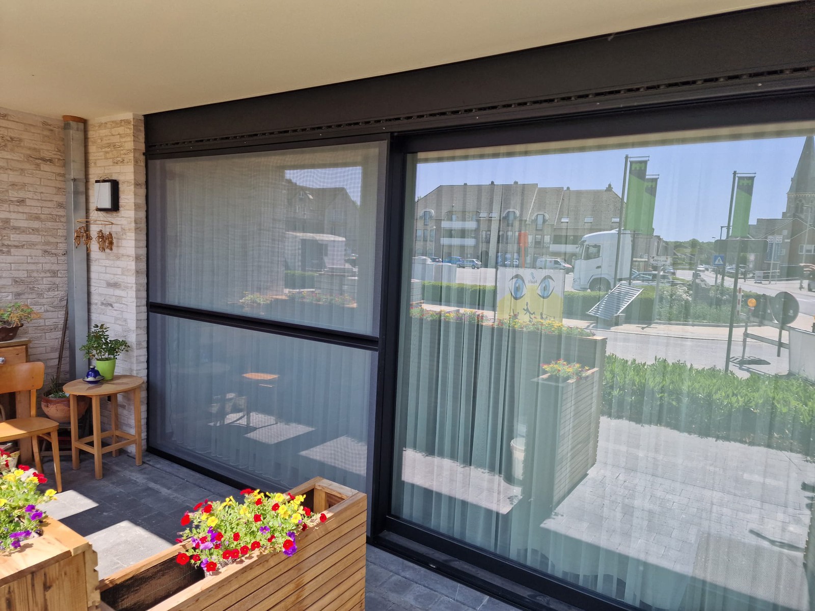Fijne profielen en zwart of grijs gaas maken het vliegenraam visueel subtiel, zonder in te boeten op werking.